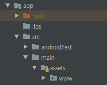 1. 아래와 같이 src/main 아래에 assets/www 디렉토리가 없으면 생성하고, 그 아래 HTML 파일들을 복사한다.