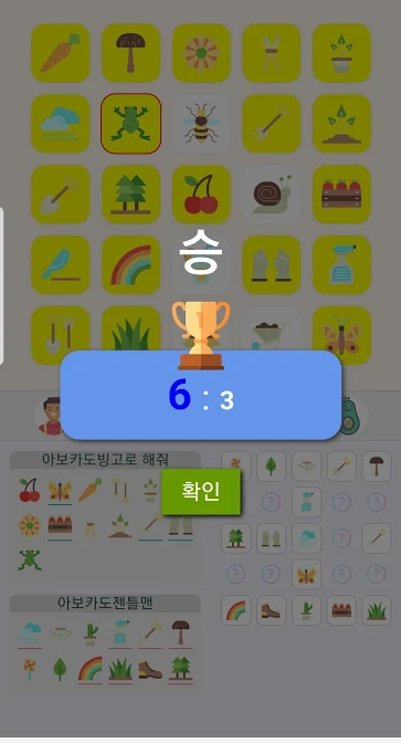 다양한 그림아이콘을 이용해 친구와 1대1 빙고게임을 해보세요. 숫자, 알파벳 뿐 아니라 다양한 그림아이콘을 이용해 재미있는 빙고게임을 할 수 있습니다. - 혼자하기 빙고AI 아보카도젠틀맨과 대결해 보세요~ 잘하는것 같기도 하고, 못하는것 같기도.. 혼자하기 게임은 인터넷에 연결되지 않아도 할수 있습니다. - 같이하기 내친구, 또는 다른 많은 이들과 게임을 즐겨보세요~ - 다양한 아바타를 이용해 자신을 표현하세요. - 다양한 게임 아이템을 이용해 더욱 더