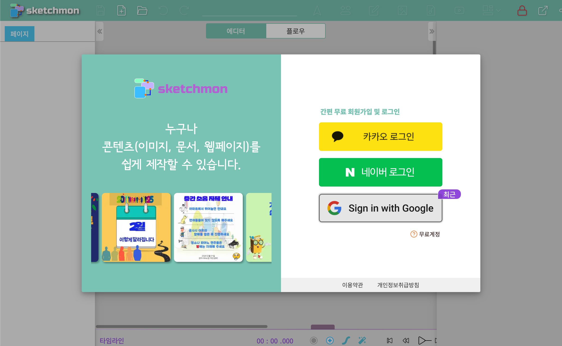 스케치몬 최초 접속 / 로그인 화면