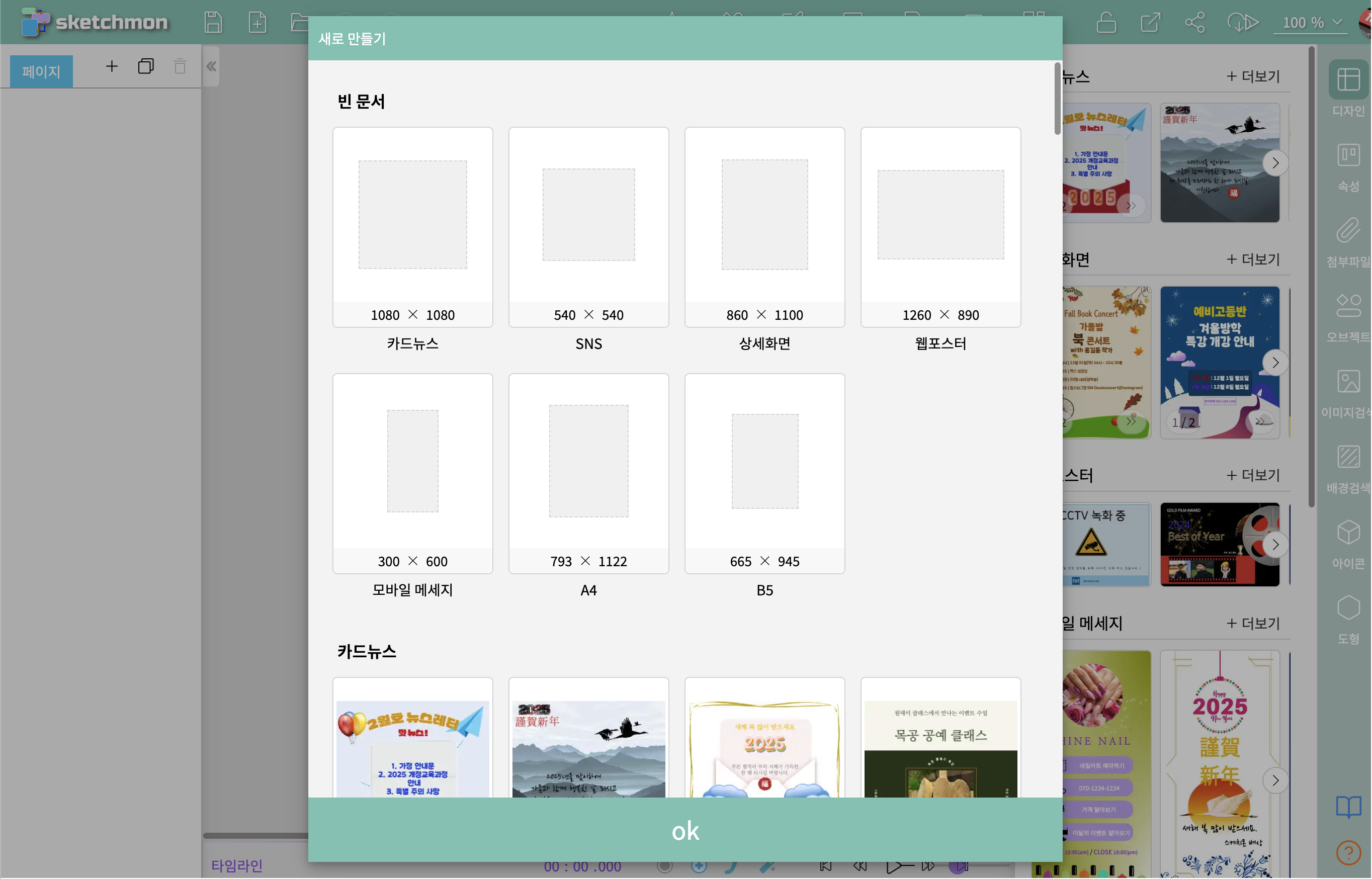 - 상단 [빈 문서] 중 하나를 더블클릭하면 해당 사이즈의 빈 문서가 열린다.