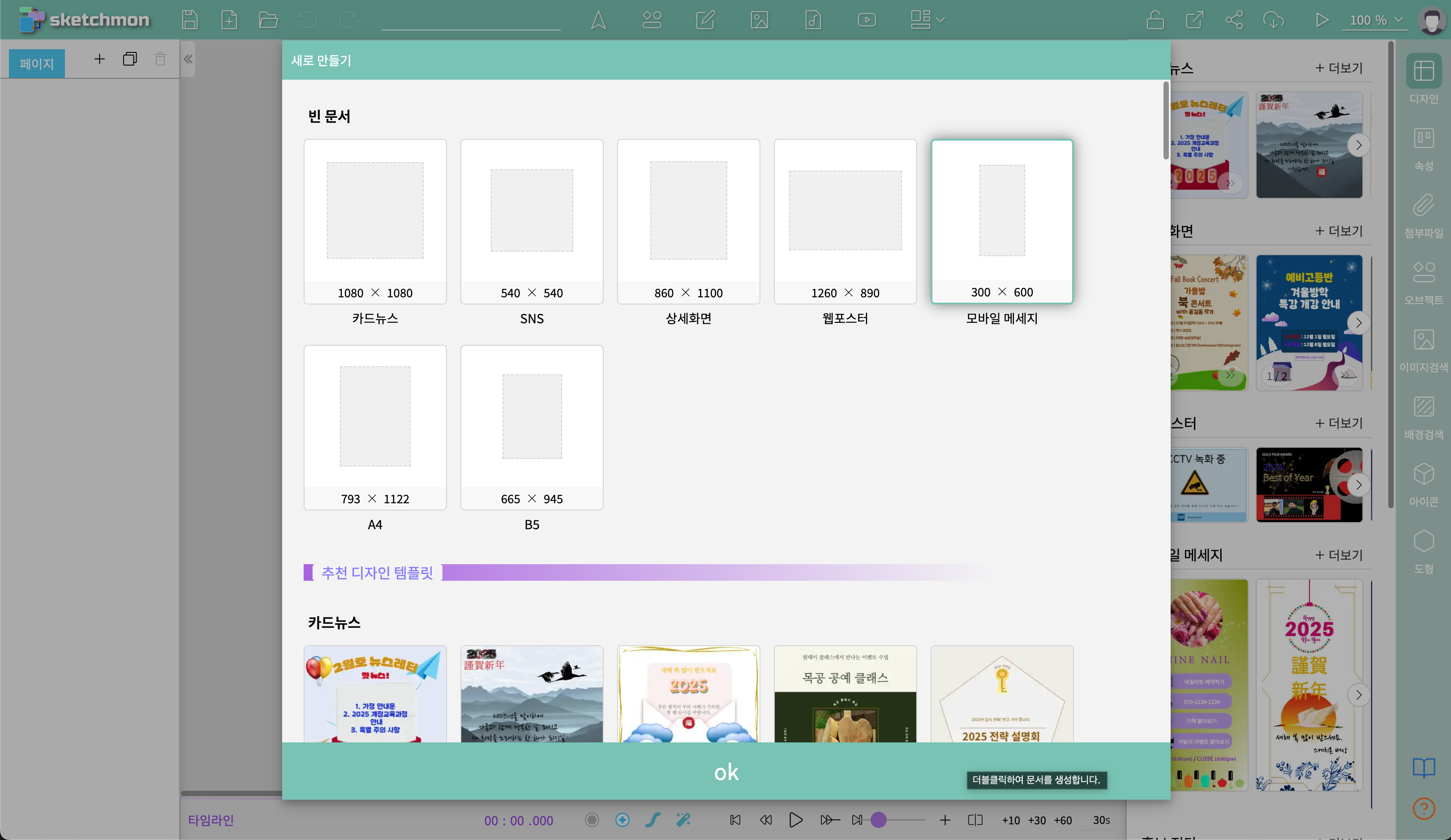 1. 새로 만들기 팝업에서 빈문서 > 모바일 메세지 선택하고 더블클릭
