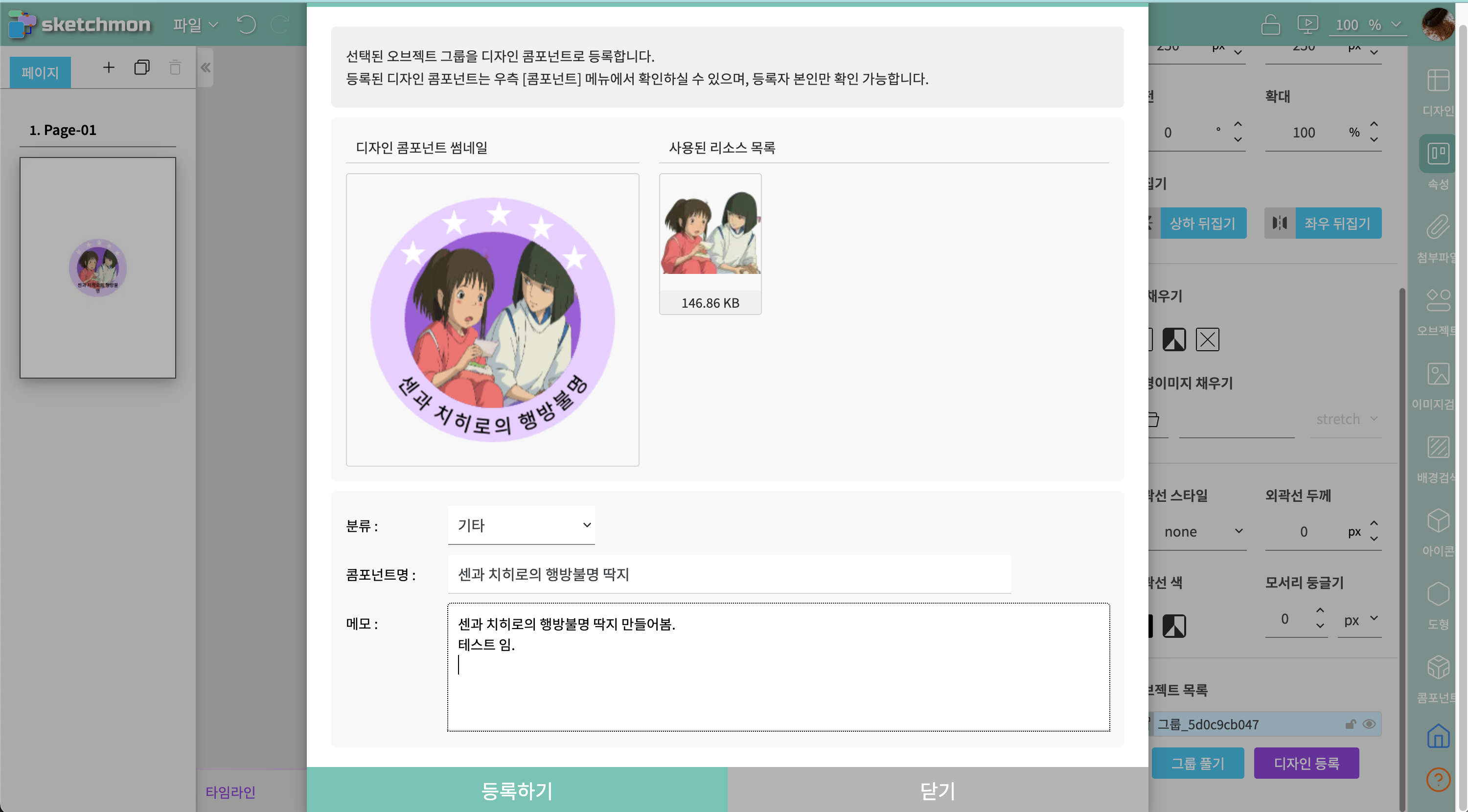 2. 그룹으로 묶이면 우측 아래에 "디자인 등록" 버튼이 생기는데 이걸 누르자
