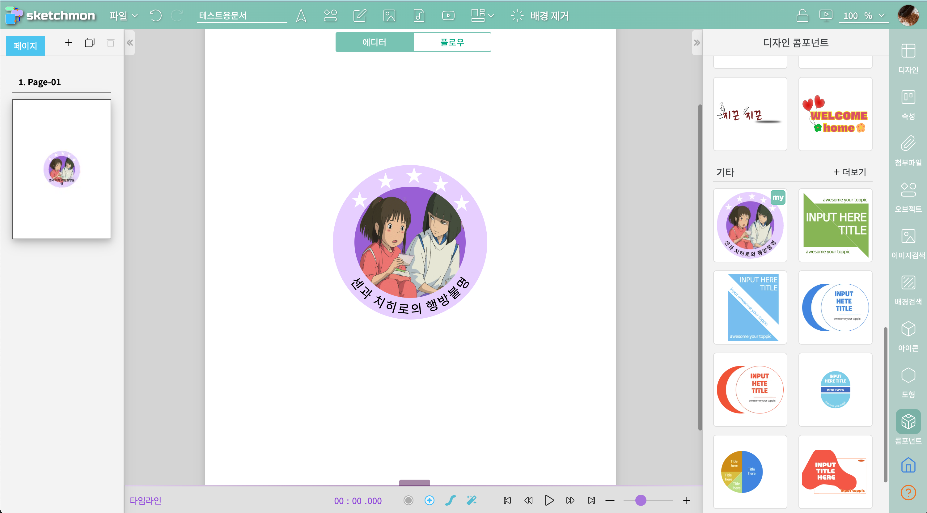 우측 메뉴 중 "콤포넌트" 를 선택하면 디자인 콤포넌트들이 출력되는데, 이곳에 내가 만든 디자인도 등록할 수 있다.