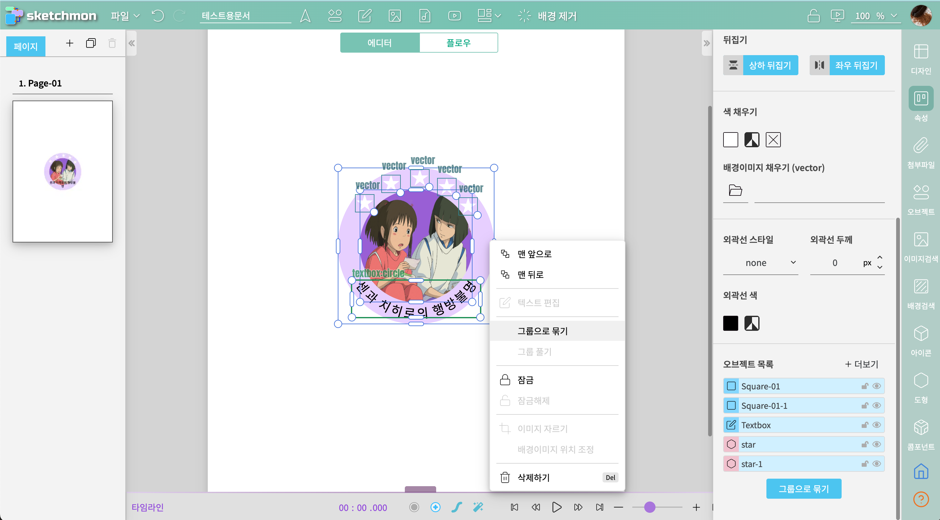 1. 등록할 디자인 세트를 만들고 전체 선택한 뒤 "그룹으로 묶기" 한다.